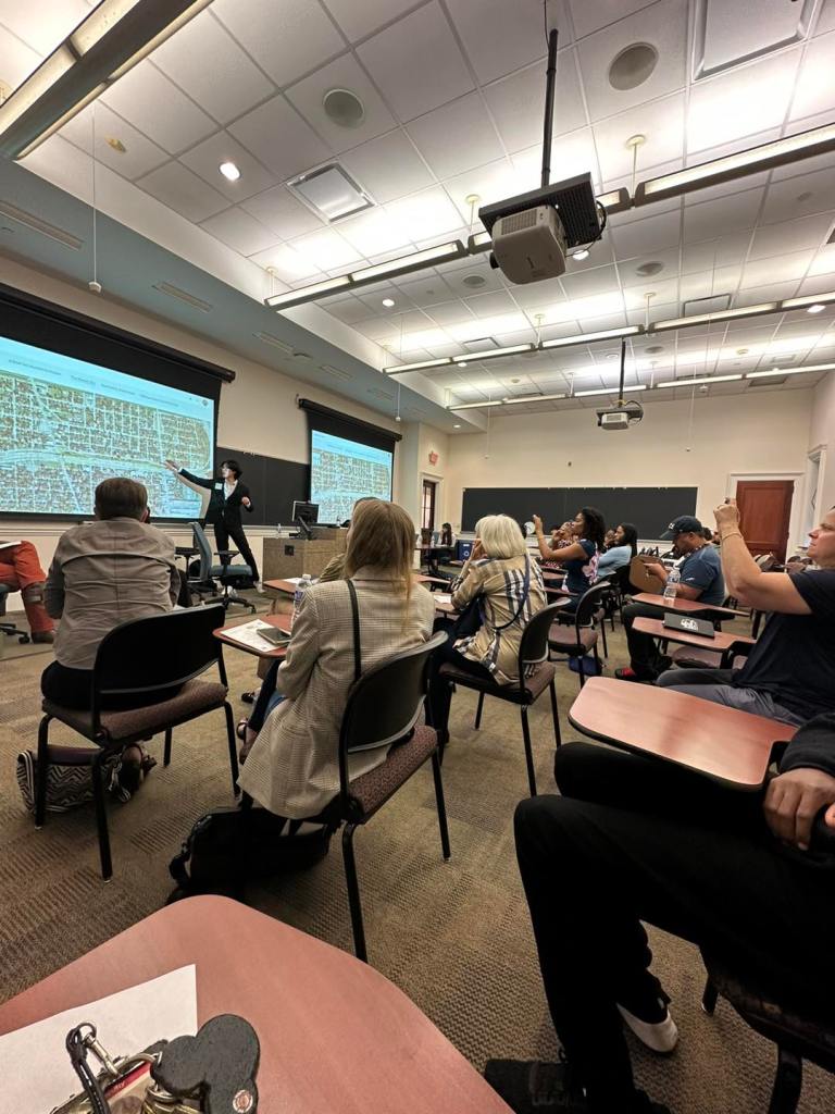 Leon and Melanie attending seminar on Houston Highways panel at Rice University.
