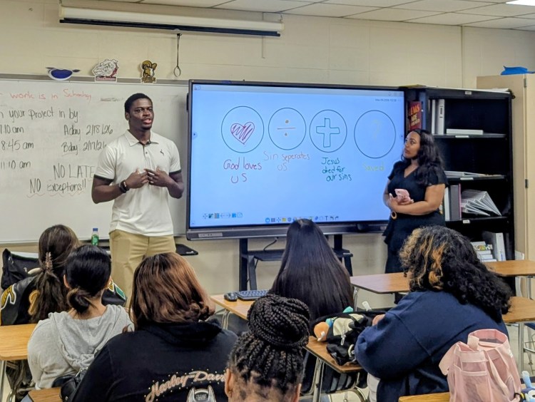 Our outreach extended beyond the playground and into the halls of Eisenhower High School. Administrators graciously allowed our team to visit over 70 classrooms. The collegians connected with high schoolers through games, shared insights into university life, and offered powerful personal testimonies of faith. Along with high school outreach in the mornings they participated in community outreach at Garden City.
